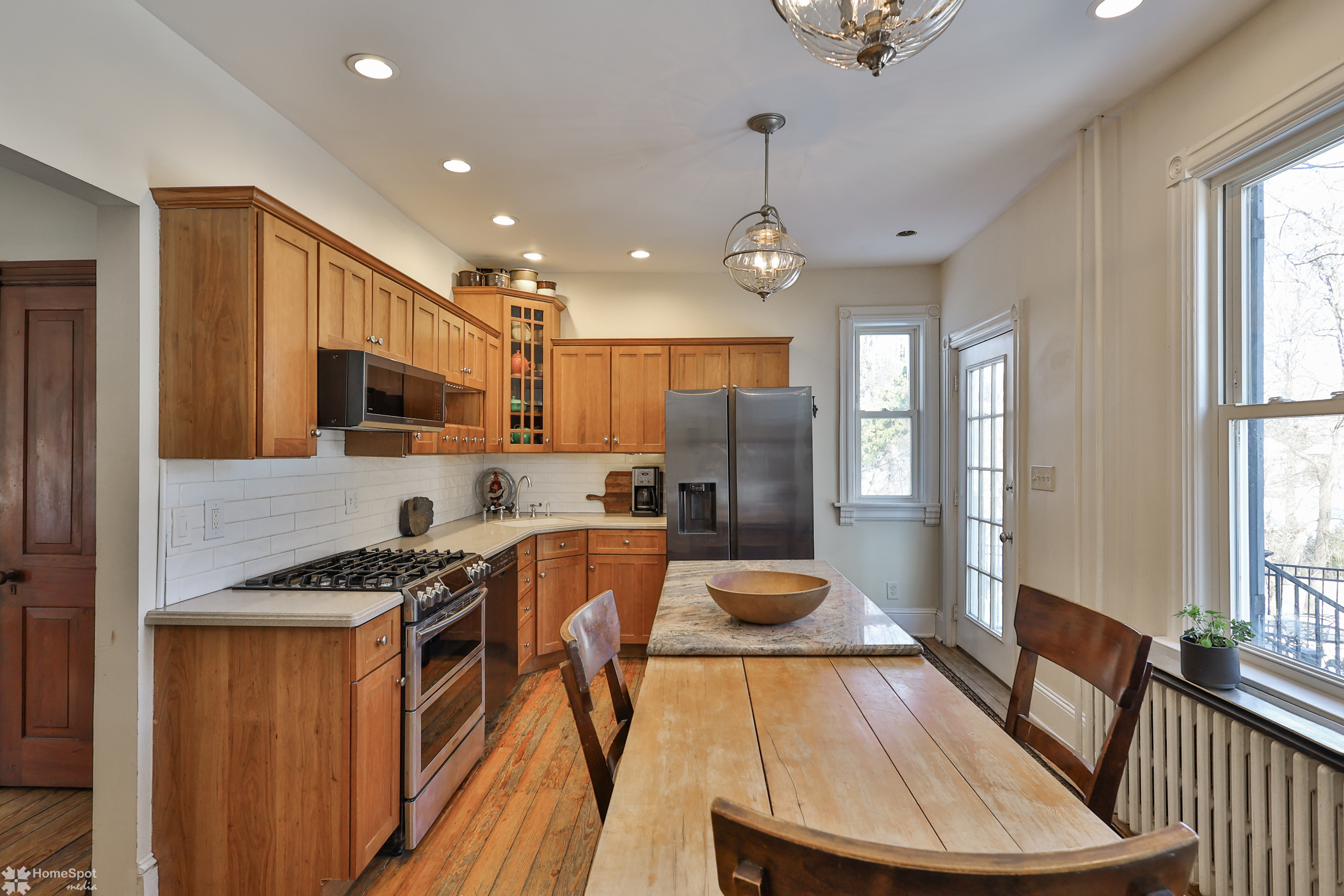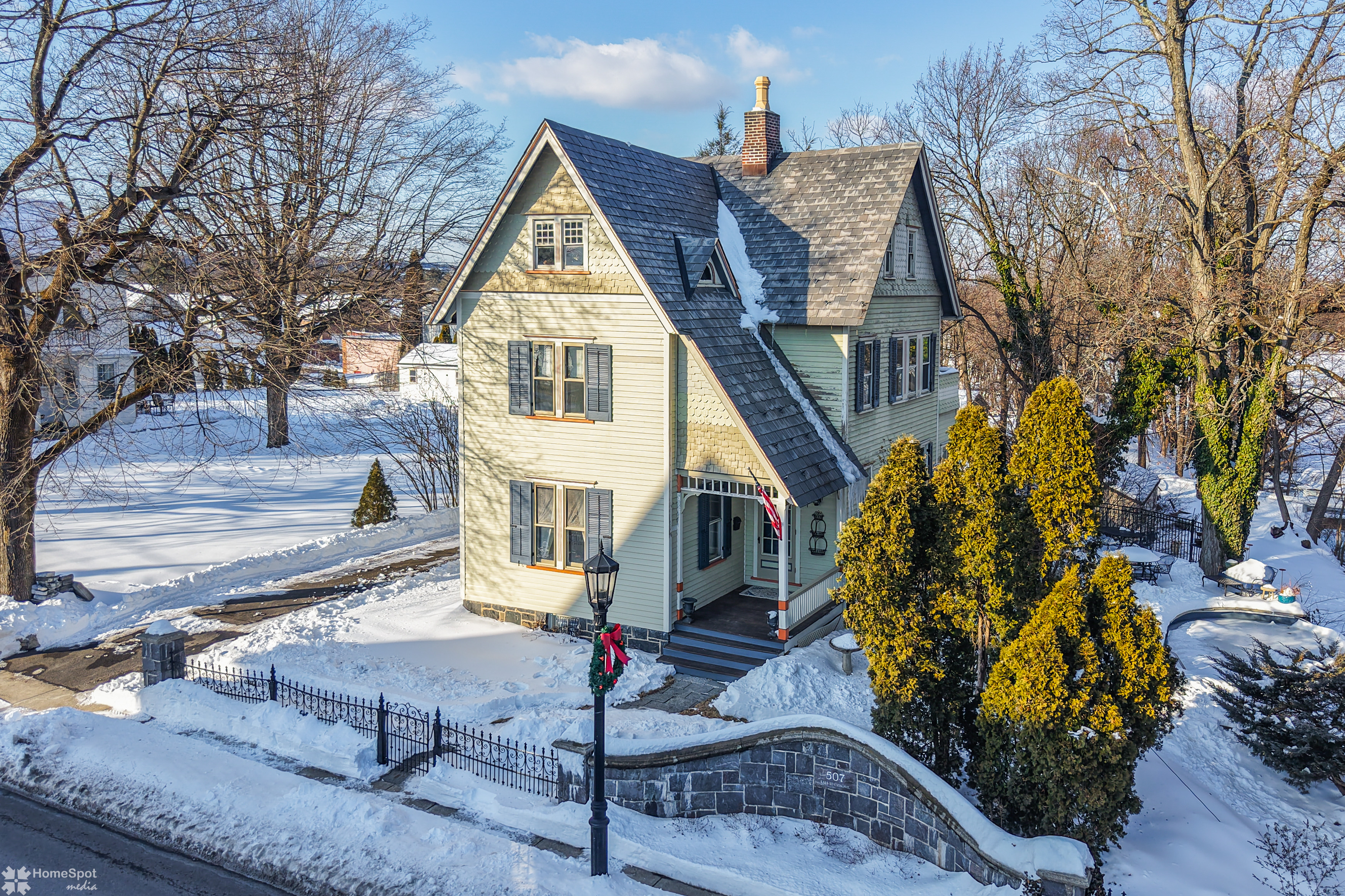 An exceptional historic Victorian located in the Coopersburg Historic District and the sought-after Southern Lehigh School District. Part of the 2022 Streetscape Project, this beautifully renovated home preserves its original old-world charm while offering thoughtful updates, including a full bath renovated in 2025. The kitchen and baths reflect the home’s historic character. 1st floor offers 9' ceilings, natural woodwork, stained glass window in the entry foyer, living room, dining room, eat-in kitchen, office and 1/2 bath. 2nd floor has a loft area plus 3 bedrooms and a full bath. Set on a park-like .948-acre lot nestled right in the Borough, this home feels like a private oasis. The grounds feature a babbling stream, pond, vanishing-edge pool, slate patio, and approximately 900 sq ft of hand-cut flagstone pool decking, surrounded by lush mature landscaping. Stone walls, granite accents, and an antique wrought-iron fence reclaimed from the historic Blue Church add rare character. Enjoy views from the second-floor balcony overlooking the park-like yard. This is a gardener's paradise, with garden shed, one-car garage, ample on and off-street parking, walk-up attic plus the home is wired for a generator. Conveniently located just one hour from NYC and 45 minutes to Philadelphia, this one-of-a-kind property blends history, beauty, and tranquility.